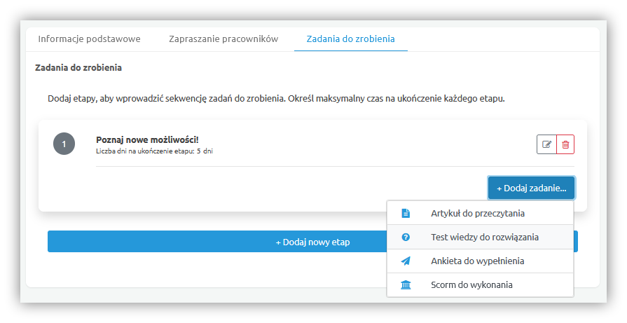 e-learningowego dla organizacji? emplo udostępnia narzędzia, które pomogą zrealizować cel! Przygotowując proces, możesz dodać nie tylko gotowe pliki SCORM, ale także wykorzystać 3 inne typy zadań: