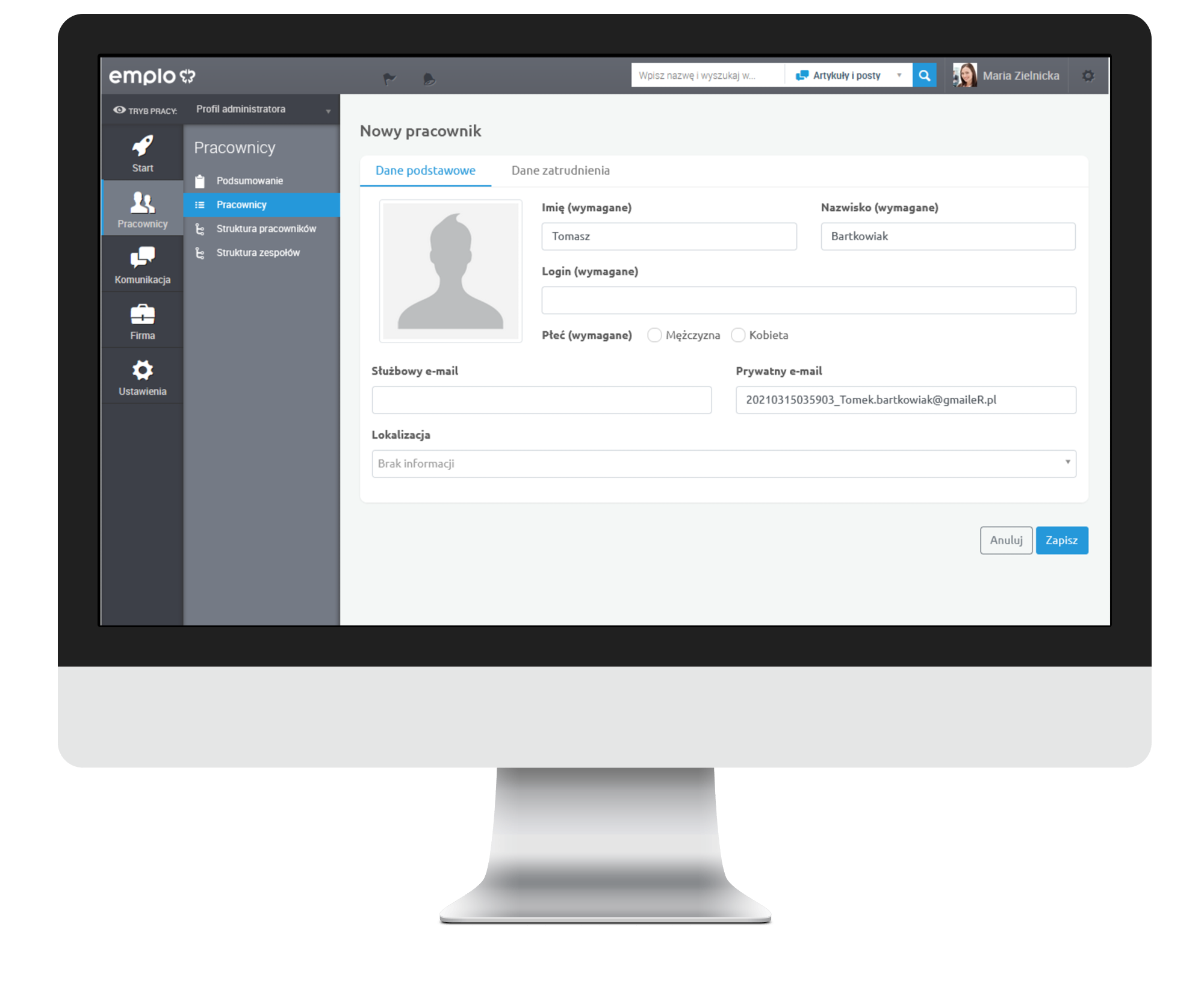 - Zautomatyzowanie procesu dodawania nowych pracowników do emplo.