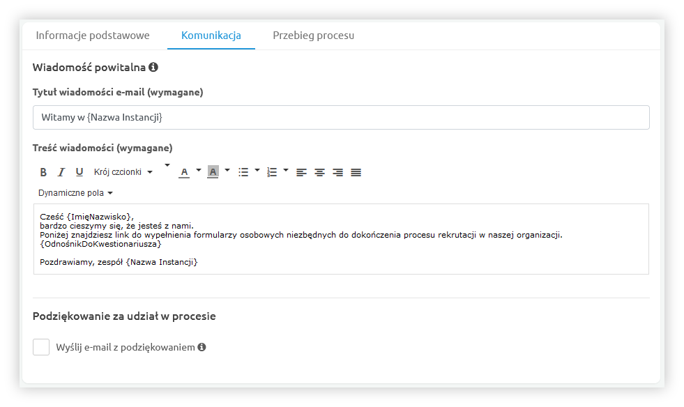 Chcesz, aby pracownik otrzymał podziękowanie za wypełnienie kwestionariusza? Wystarczy jeden klik, a uzyskasz dostęp do kolejnego kreatora!