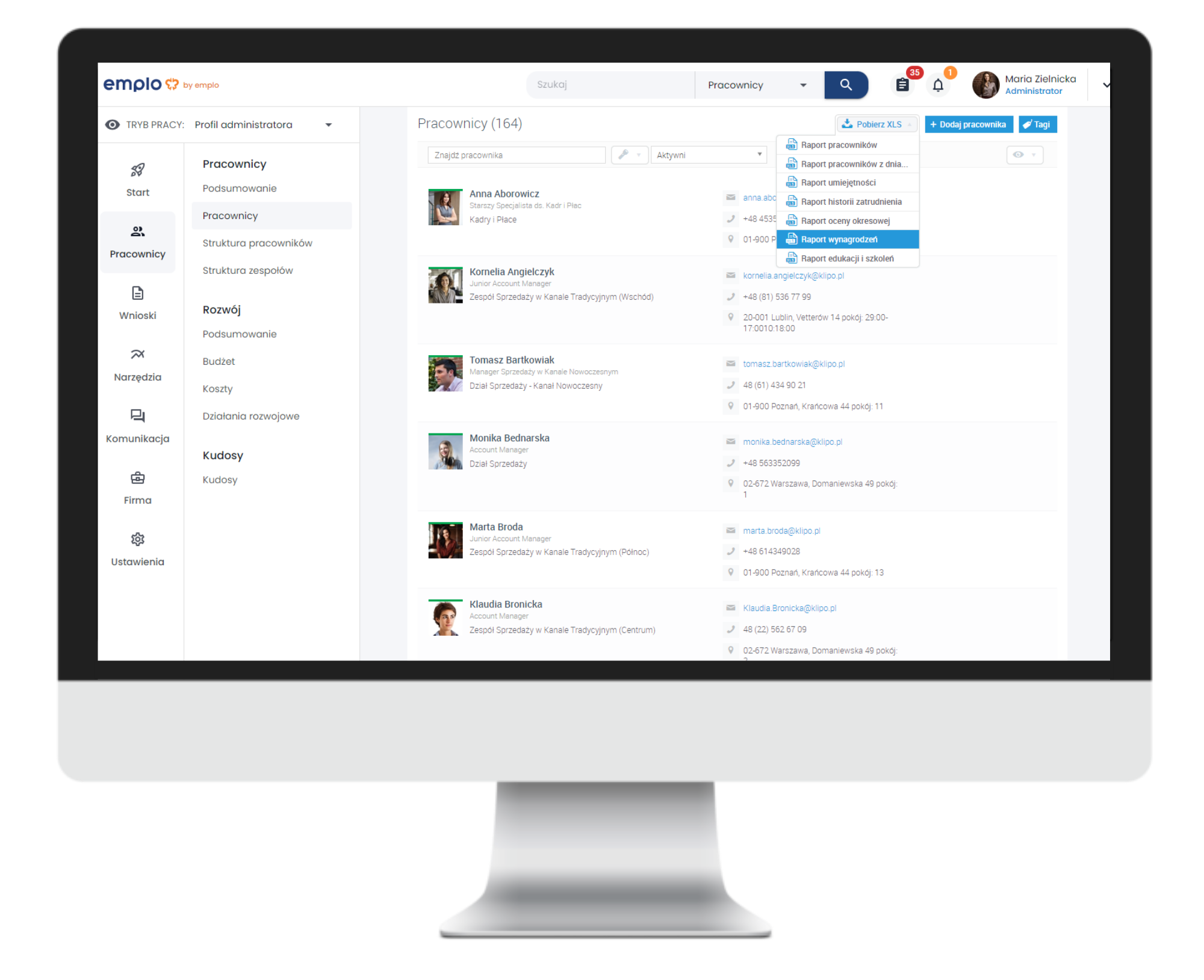 Administratorzy emplo posiadają znacznie więcej możliwości niż pozostali użytkownicy emplo. Osoby, z dostępem do dedykowanego profilu administratora mogą zarządzać ustawieniami platformy, takimi jak: uprawnienia, struktura zespołów i pracowników czy schematy ocen.